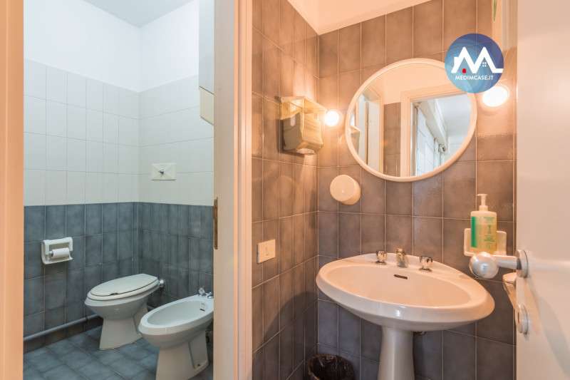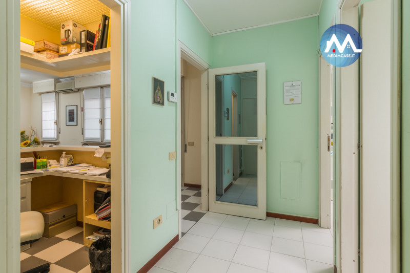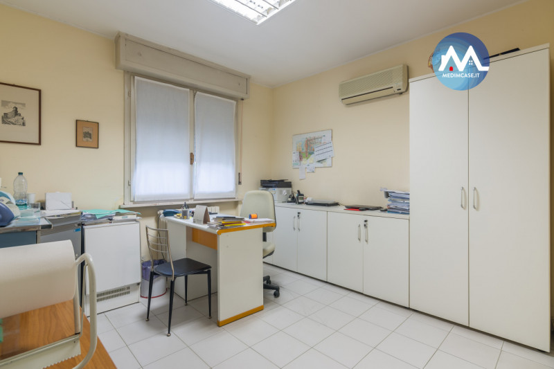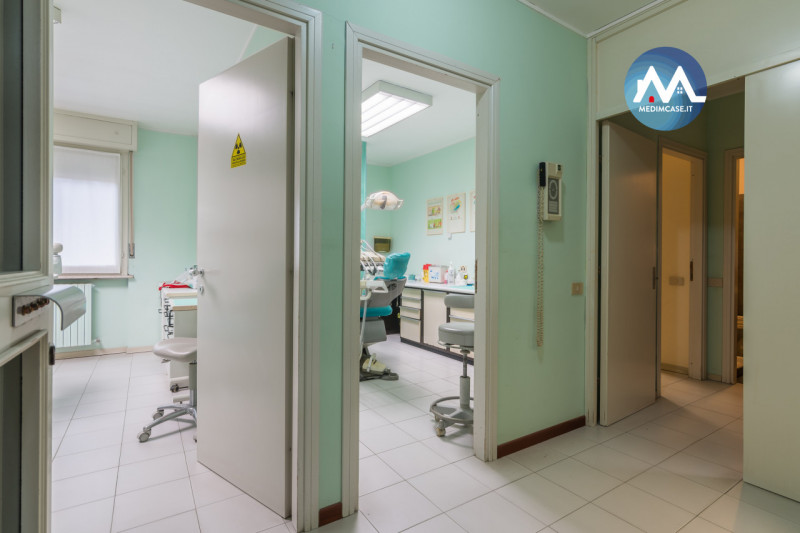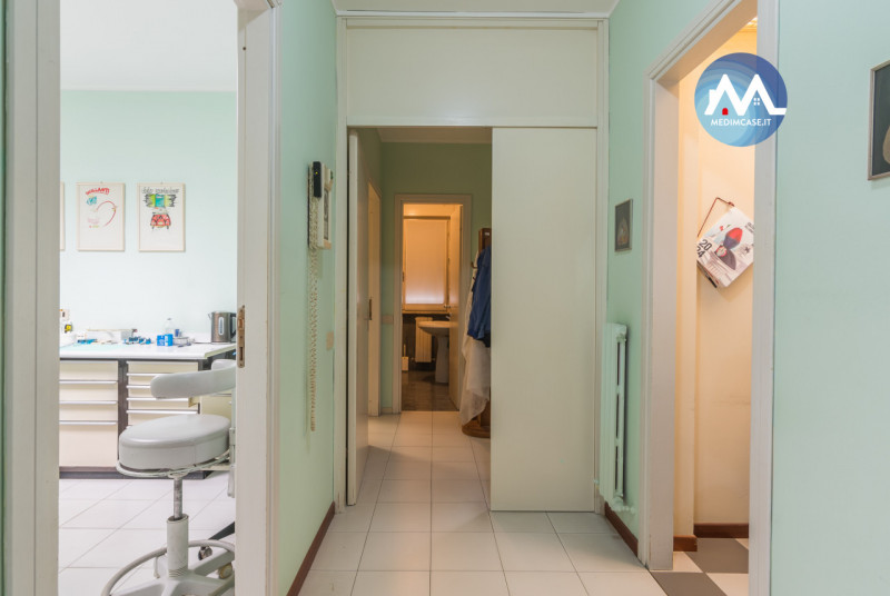 COMPOSIZIONE: L’appartamento è posto al primo piano senza ascensore, al piano terra abbiamo un porticato e un bar. Attualmente è adibito a studio dentistico e nasce dalla FUSIONE di un BILOCALE e TRILOCALE con gli INGRESSI ancora DIVISI. Soluzione ideale per GENITORI/FIGLI. Dal primo portone si accede ad un AMPIO SOGGIORNO con balcone loggiato, in fondo abbiamo un bagno e l'accesso al disimpegno dove abbiamo l'accesso a 2 CAMERE DOPPIE, UNA CAMERA SINGOLA, il SECONDO BAGNO e la SALA DA PRANZO con AMPIA TERRAZZA di 30 mq e CUCINOTTO. Tramite scala interna si accede al piano seminterrato dove si trova un GARAGE DOPPIO.